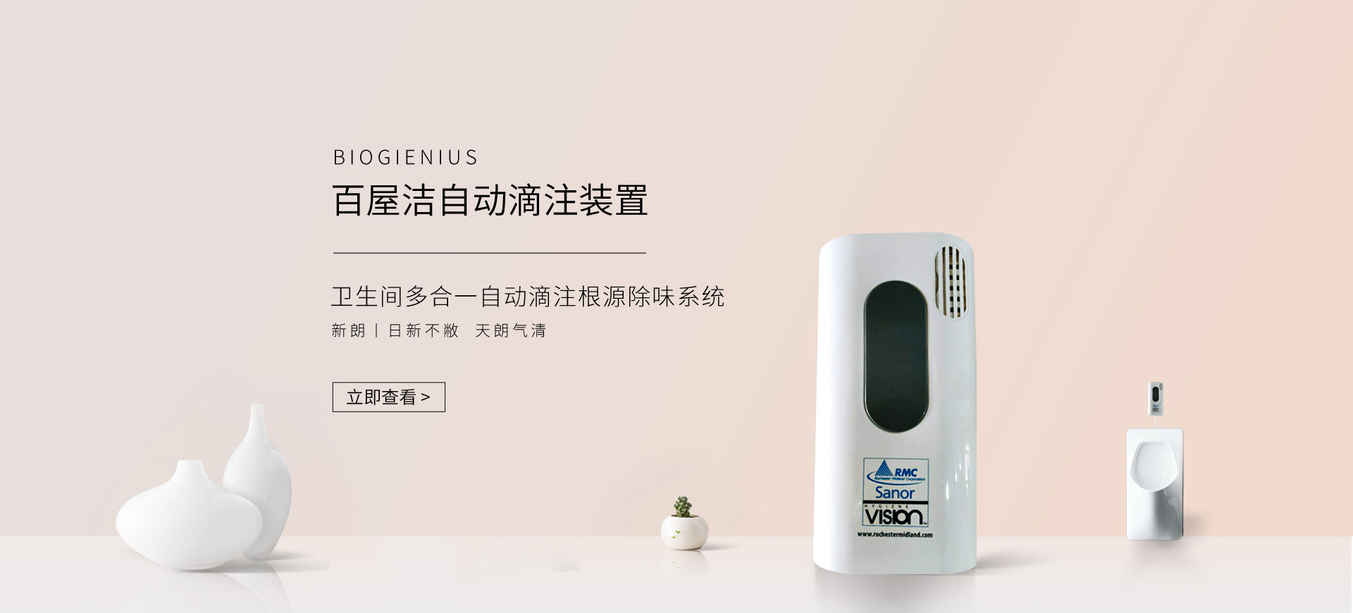 新朗環(huán)境自2015年起與美國具百年歷史的跨國企業RMC(Rochester Midland Corporation)合作, 進口 RMC用于機械制造、交通運輸、航天航空、石油化工、食品禽肉乳制品加工等工業生產制造行業的專業清洗、滅菌系列產品,以及酒店、CBD大廈、學校(包括幼稚園)、醫療機構、百貨商場、養殖業、餐飲業等商用行業清潔、消毒系列產品,還有專用于各個行業單位“廁所革命”的公共衛生間根源除味第5代SANOR?衛生間自動滴管系統、第6代百屋潔SIOGIENIUS?電子控制衛生間自動滴注系統等系列產品項目。